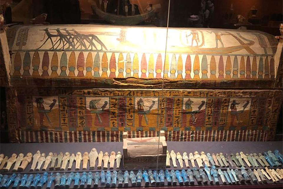 Экспозиции: колесницы, оружие, украшения, скульптуры, мумии, саркофаги, иконы и иероглифы. Вас ждёт атмосферный коридор-лабиринт со сценической подсветкой и увлекательные истории от русскоговорящего гида.