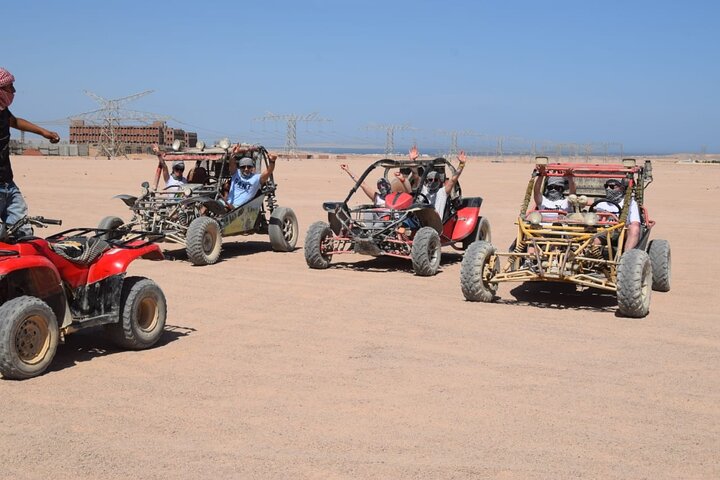 Максимально насыщенное приключение в Аравийской пустыне за один день: квадроциклы, багги, джип-сафари, верблюды, деревня бедуинов и красочный закат. Формат подходит взрослым и семьям с детьми.